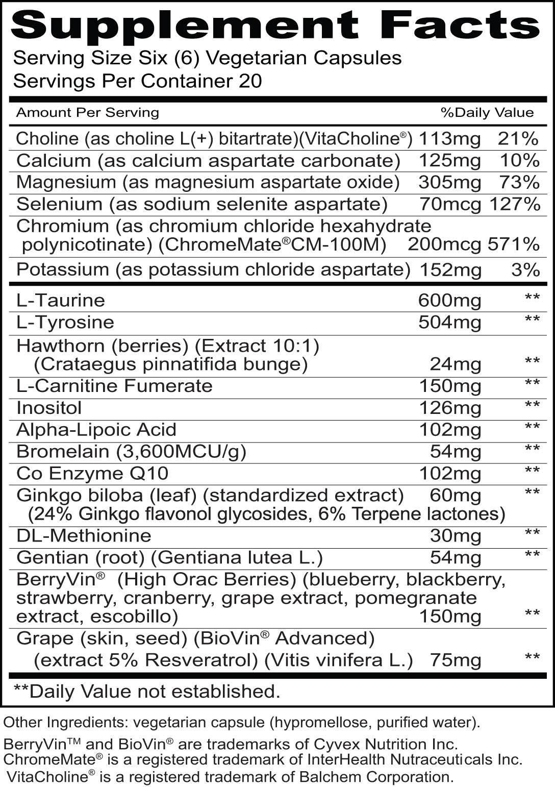 • Selenium: Provides antioxidant protection for cardiovascular tissues.*