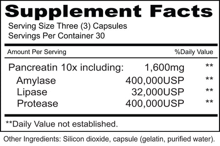 Pancreas 10xtra (90 cápsulas) Los suplementos de Pancreas 10X incluyen las enzimas pancreáticas amilasa, lipasa y proteasa para apoyar naturalmente una digestión saludable cuando se toman con las comidas.*