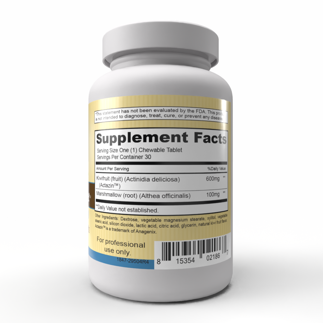 Each chewable features Actazin™, a clinically studied, non-GMO green kiwifruit extract from New Zealand, along with soothing marshmallow root to promote digestive ease and intestinal balance.*